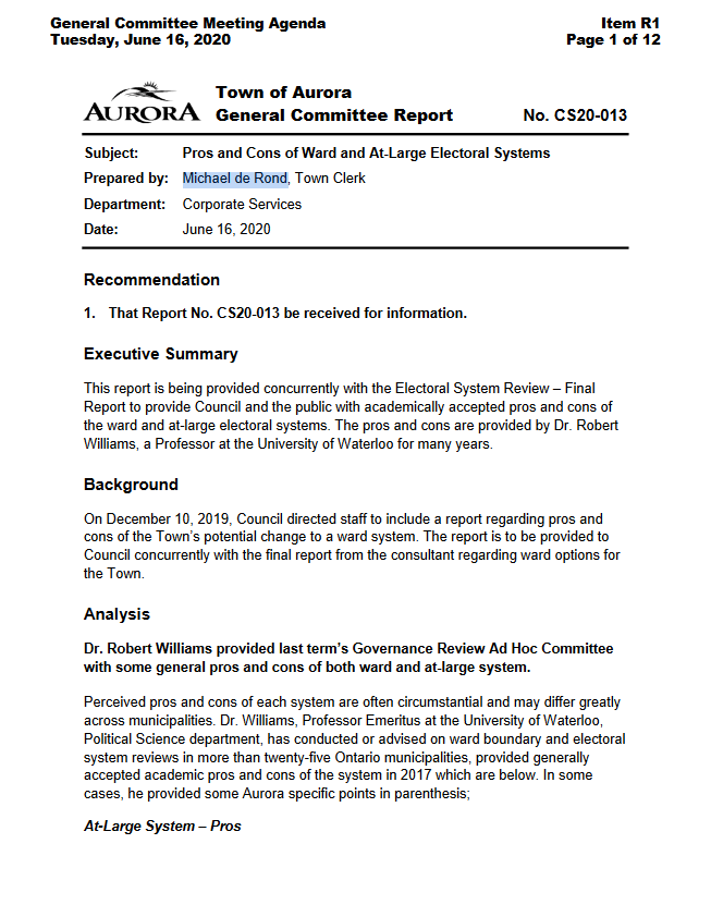 By: Michael de Rond, Town of Aurora | Date: June 16, 2020
